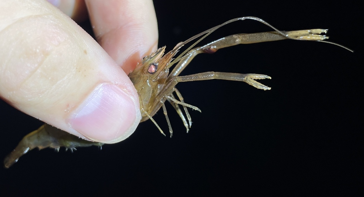 Want to see a freshwater prawn for yourself? All you need is a quiet creekside evening and a flashlight. A red light filter is even better because it’s gentler on wildlife.